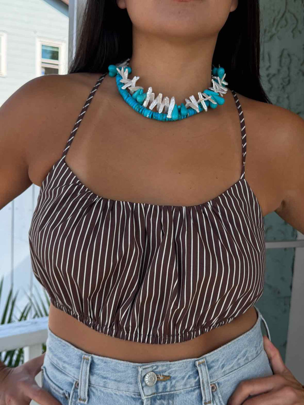 Staud Size Medium Brown Striped Crop Top
