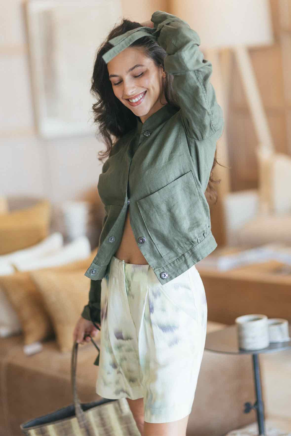 Green/Purple Pleated Shorts