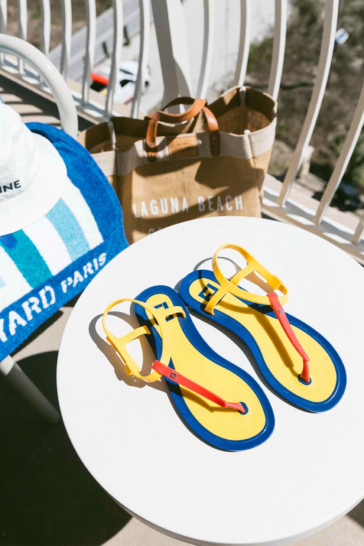 yellow, blue, red jelly sandal