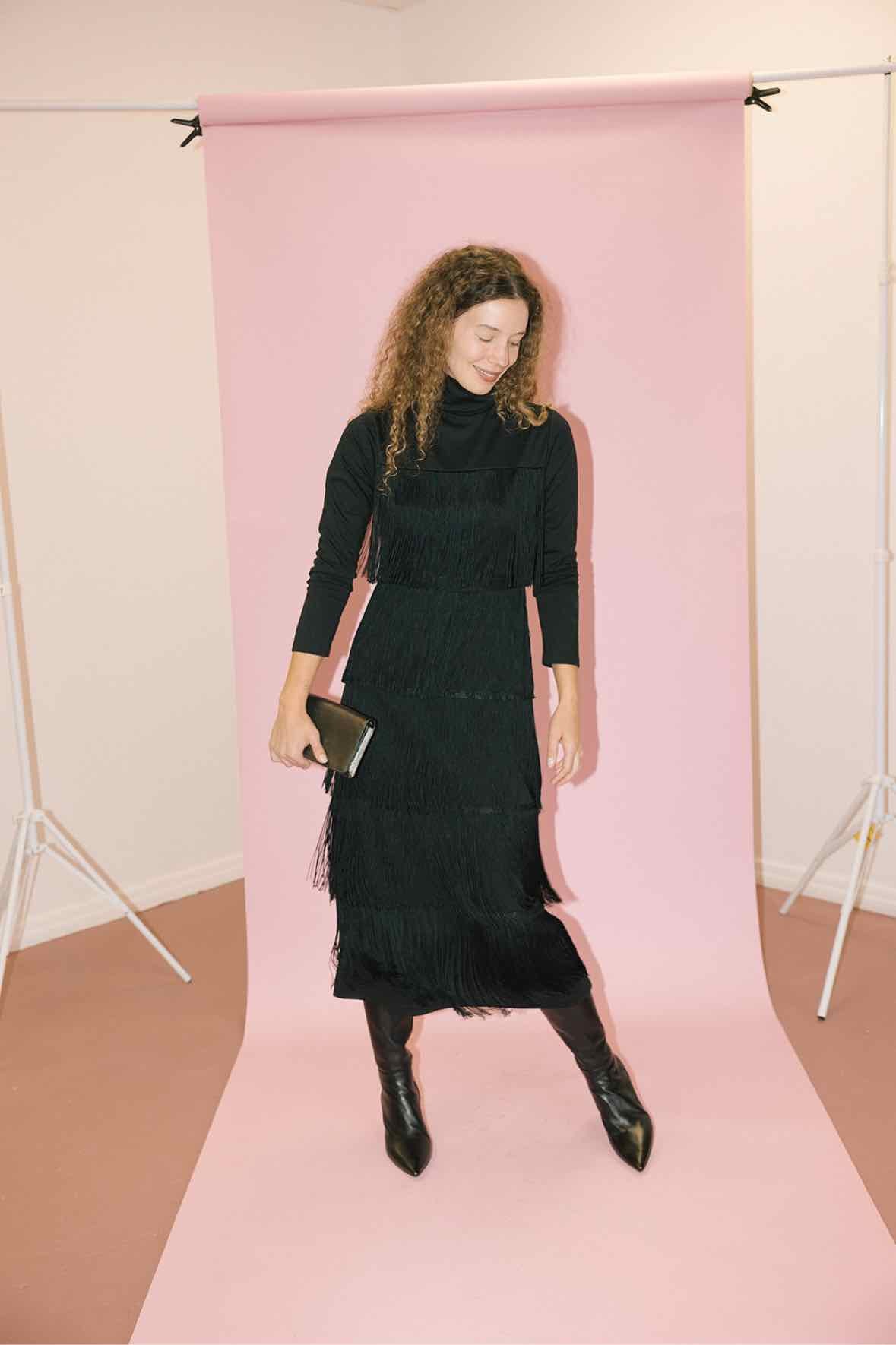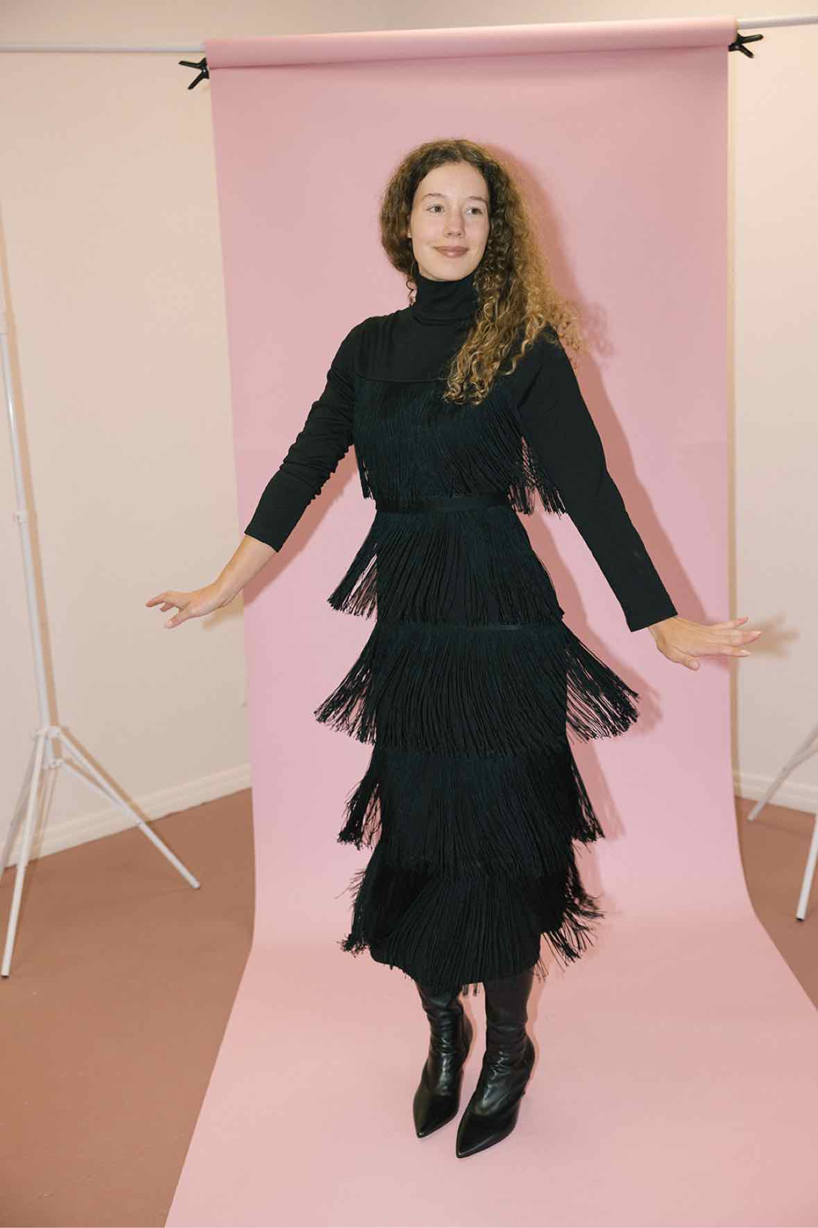 High neck fringe dress