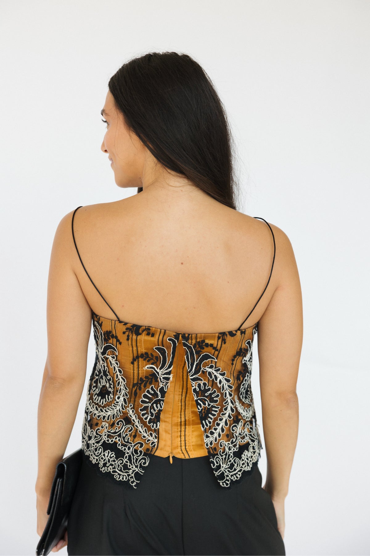 Burnt Orange with Black Overlay Lace Corset Top